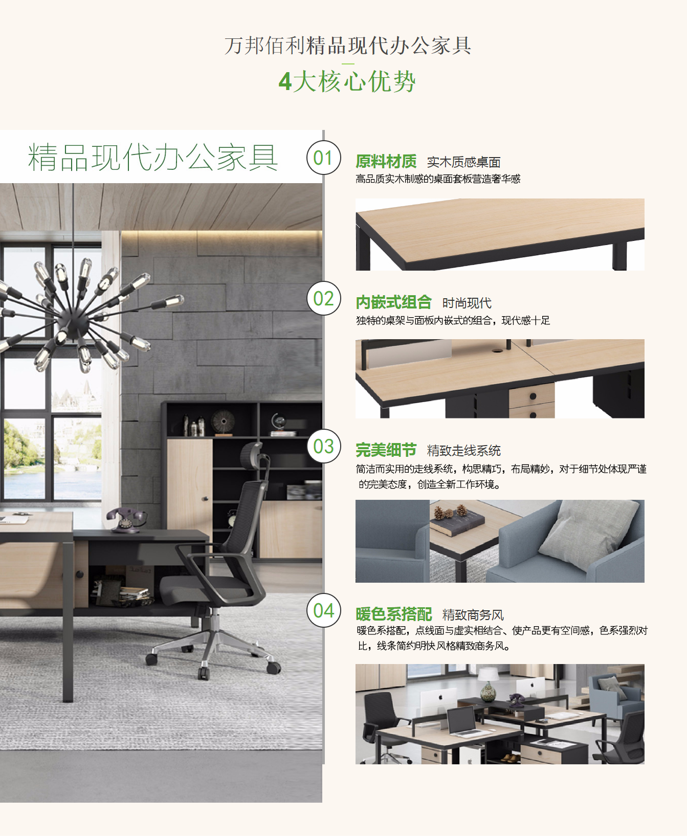 北京萬(wàn)邦佰利家具有限公司是一家專注于辦公家具生產(chǎn)、批發(fā)銷售的公司。銷售的產(chǎn)品有:班臺(tái)、經(jīng)理桌椅、會(huì)議桌椅、員工桌椅、文件柜、密集柜、視屏?xí)h桌、辦公沙發(fā)、學(xué)校家具、銀行家具、戶外家具、醫(yī)院家具等產(chǎn)品,公司自成立以來(lái)始終堅(jiān)持以人才為本、誠(chéng)信立業(yè)的經(jīng)營(yíng)原則,堅(jiān)持用企業(yè)文化提升企業(yè)核心競(jìng)爭(zhēng)力,使企業(yè)在發(fā)展中處于良好的形象.我公司主要服務(wù)于企業(yè)單位的家具定制服務(wù),為各大企業(yè)量身定做整體環(huán)境的家具設(shè)計(jì)全程服務(wù),我們的整體產(chǎn)品服務(wù)...